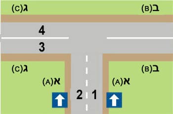 טעות נפוצה: לא נכון. התשובה הנכונה היא ד'. מעבר מנתיב 1 לנתיב 3 הוא תיאור של פנייה ימינה. השאלה היא על פנייה שמאלה (מרחוב א' לרחוב ג').