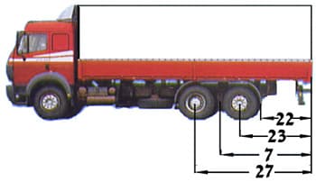 איך לזכור: שלוחה אחורית היא הזנב של המשאית. חפש את החץ שמתחיל באמצע הגלגל האחורי ומסתיים בקצה הארגז מאחור. 📏