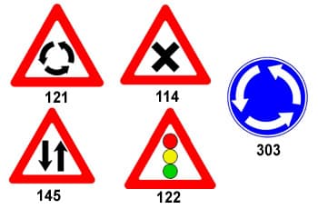 טעות נפוצה: לא נכון. תמרור 114 מזהיר לפני צומת הצטלבות דרכים (כמו X), לא לפני כיכר. התשובה הנכונה היא ד' - תמרור 121, שמראה שלושה חיצים במעגל, הוא המזהיר הרשמי של מעגל תנועה.